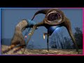 • If it finds a ragdoll or corpse, it'll quickly run to it and use the appendage at the bottom of it, the limb at the bottom will be used as a feeding tube, so it crouches down and uses it as a straw for feeding. By doing this, it gains HP from eating corpses.